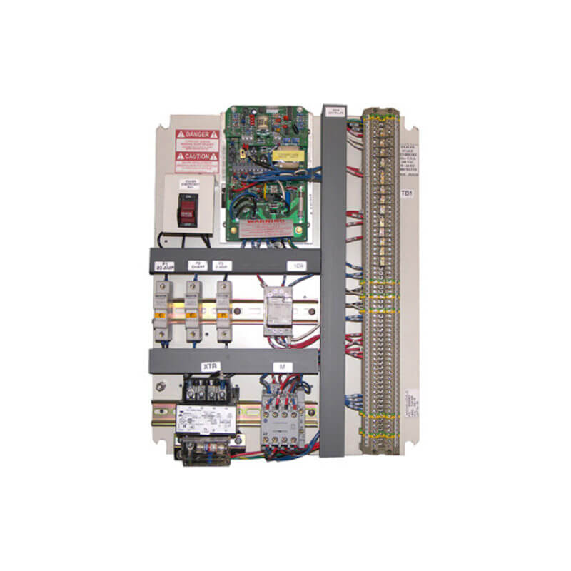 The PCA is available in a Nema 4 or 4X wall mount enclosure, or as an open chassis unit designed for panel mounting. (refer to figures 3 and 4) This unit consists of an SCR Controller, Locking Power Disconnect Switch, Motor Starter and other related components needed to complete a basic analog drive controller package.
